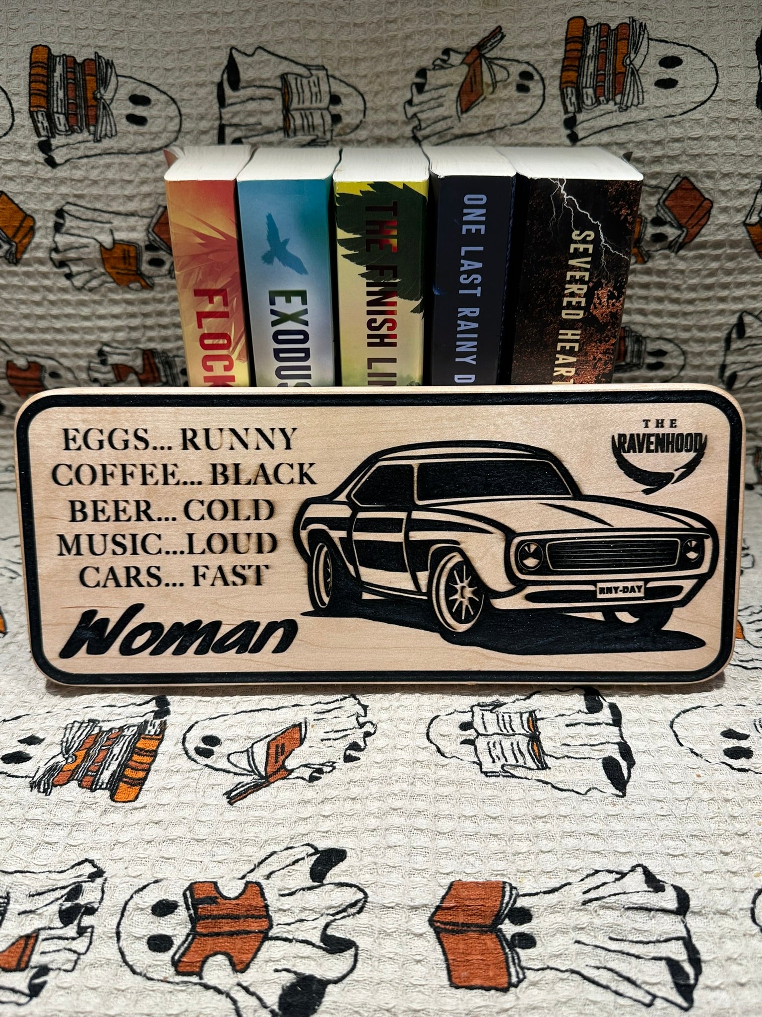 Officially Licensed Dom’s Car Bookshelf Sign; Flock The Ravenhood Merch